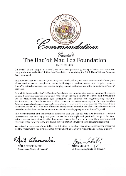 “The state of Hawaiʻi, Maui County and local businesses are leading by example, demonstrating that investing in energy efficiency, in recycling, and in preserving natural resources protects the environment and makes good business sense,” said Governor Neil Abercrombie. ” By reducing the electricity and water they use and waste, these private and public sector innovators are helping our state reach the goal of 70 percent clean energy by 2030.”