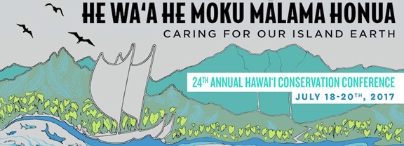 Registration is now open for the 24th Annual Hawaiʻi Conservation Conference, July 18-20th, 2017 at the Hawaiʻi Convention Center. This year’s theme, “He Waʻa He Moku- Mālama Honua: Caring for our Island Earth” highlights the need to treat the biocultural resources of our island home, and island earth, as carefully as we would the limited water and food carried on a waʻa.